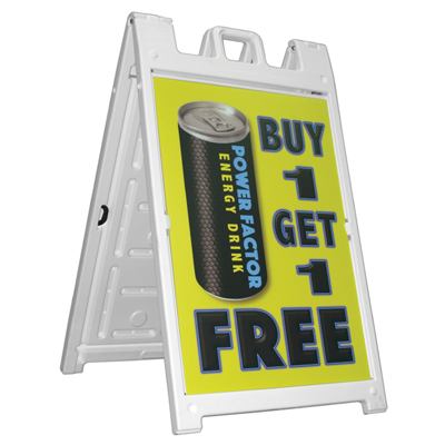 Do you know what your business needs? A bold collapsible sign that can easily be moved around. Not only will this sign get your message across, loud and clear, but you can also easily fold it and transport it to another area for increased visibility. Durable and sturdy, this sign will act as a stable reminder to guests that your business is open.